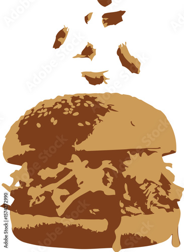 Delicious pulled pork burger with coleslaw and bbq sauce on a sesame bun presented as a silhouette