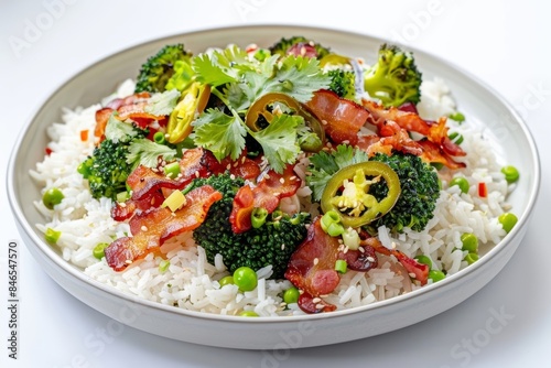 Delicious Rice Bowl with Crispy Bacon and Tender Broccoli