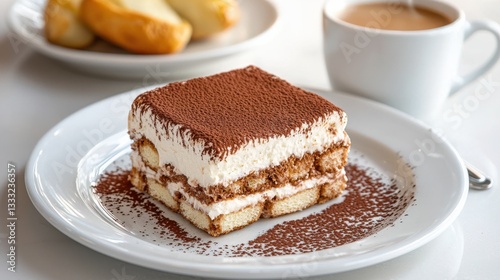 Delicious Slice of Cake on Elegant Plate Accompanied by Hot Coffee