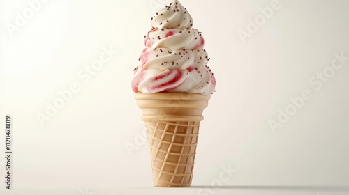 Delicious Swirled Ice Cream Cone with Colorful Swirls and Chocolate Sprinkles on a Soft Creamy Top Ready to Savor on a Bright Background