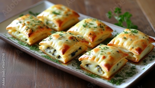 Delicious Tiropita Cheese Pastry Ready to Serve on a Rustic Wooden Table