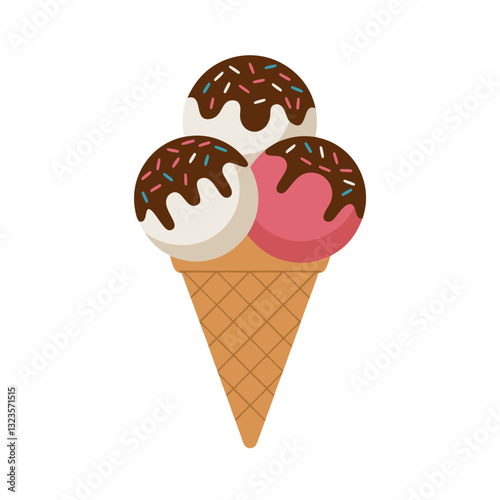 Delicious Triple Scoop Ice Cream Cone Vector Chocolate Drizzle