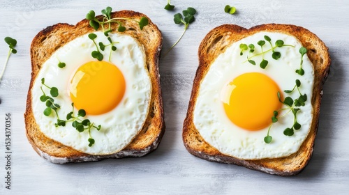 Deliciously Plated Eggs on Toast with Fresh Green Spices for Breakfast