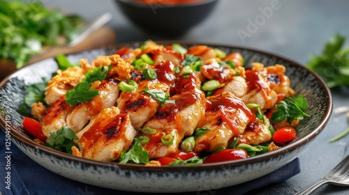 Deliciously Prepared Chicken with Sauce and Crispy Toppings