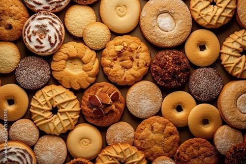 Deliciously Scrumptious. Close up of Cookies Spread on Background