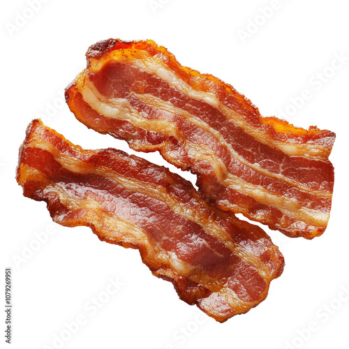 Deliciously smoked bacon strips isolated on a transparent background for culinary inspiration and recipe ideas, Smoked bacon isolated