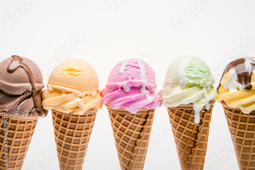 delightful assortment of ice cream cones, each boasting a different classic flavor
