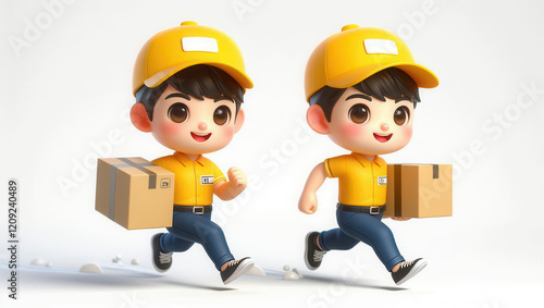 Delivery action characters fun environment cartoon style playful viewpoint expressive concept