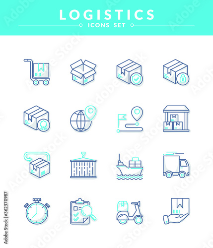 Delivery and logistics Related Icons set with dual color and shadow. New and trendy linear pictogram pack. modern vector icon concept.