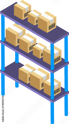 Delivery boxes on shelves isometric icon.