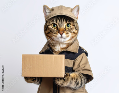 Delivery Cat Holding a Package in Uniform