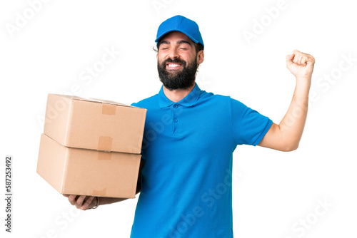 Delivery caucasian man over isolated chroma key background doing strong gesture