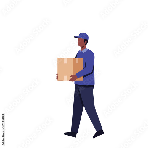 Delivery person carrying a package in a flat, minimal style vector illustration