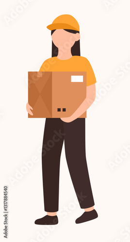 Delivery service concept. Courier with a parcel. Flat vector illustration.