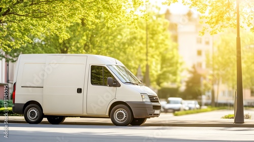 Delivery van driving away on street, symbolizing efficient logistics and timely service in modern transportation and supply chain management