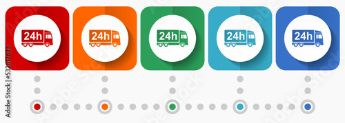 Delivery vector icons, infographic template, set of flat design truck symbols in 5 color options