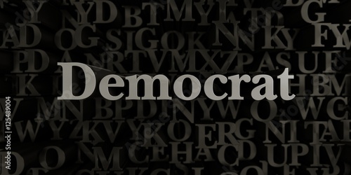 Democrat - Stock image of 3D rendered metallic typeset headline illustration. Can be used for an online banner ad or a print postcard.