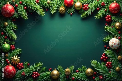 Dense coniferous branches weave a festive border, coniferous, garland, forest