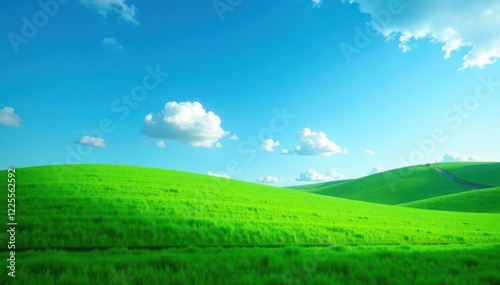 Dense emerald lawn set against a boundless cerulean sky , texture, light, vast