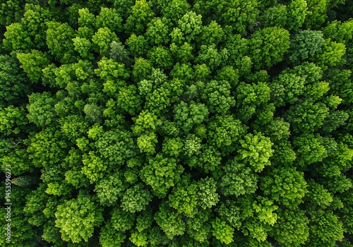 Dense green forest viewed from above, highlighting the diverse shades and textures of the trees