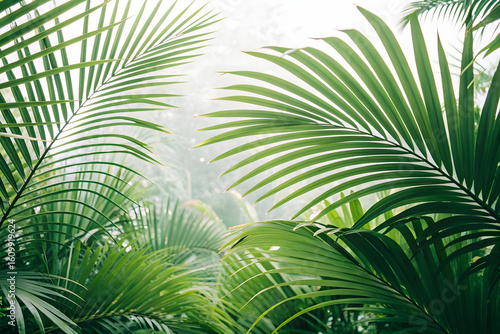 Dense Palm Leaves with Misty Tropical Atmosphere