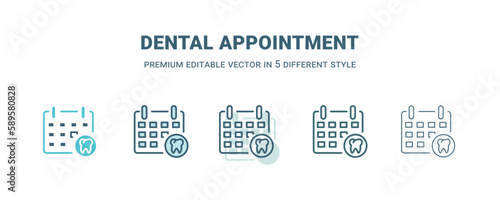 dental appointment icon in 5 different style. Outline, filled, two color, thin dental appointment icon. Editable vector can be used web and mobile