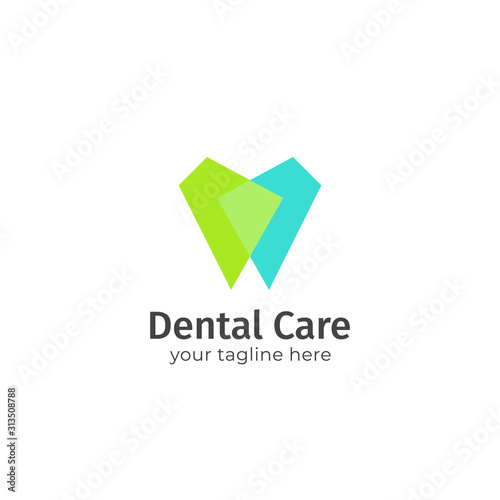 Dental care dentistry teeth logo blue and green color overlap modern simple minimalist style