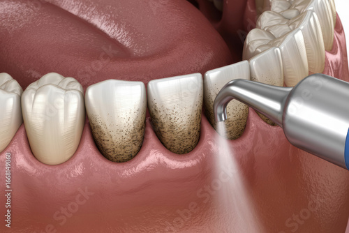 Dental Cleaning Procedure with Low Feedback Air Polishing Technique for Removing Stains and Plaque, Promoting Healthy Gums