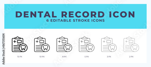 Dental record lineal icon symbol vector. Black outline for web. App. Presentation and more.