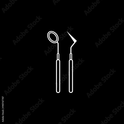 Dentist tool line icon, dental and medicine, probe & mouth mirror sign vector graphics, a linear pattern on a black background, eps 10.