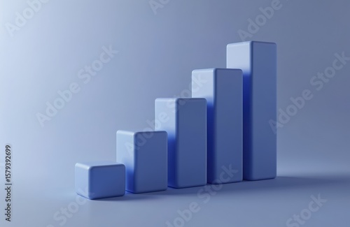 Descending bar graph on blue background. 3D render data visualization. Financial market chart, business analysis concept. Economic loss, falling sales, statistics. Ideal for presentations, reports.