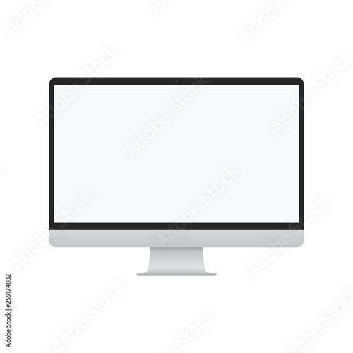 Desctop computer display front view. Computer gray screen, icon. Desctop computer sign.