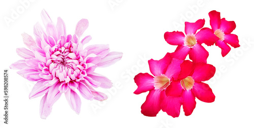 Desert rose and Chrysanthemums flower blooming isolated on transparent background with clipping path. Beauty in nature, Tropical plant, pink flora, Adenium and Bouquet of flora. png with transparency