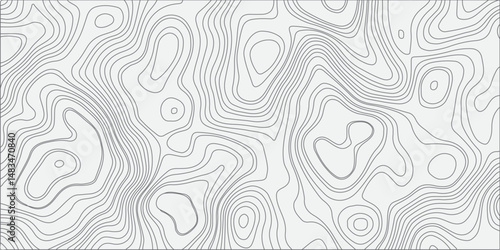"Design a smooth, seamless topographic contour map pattern in black and white. The illustration should feature flowing, organic lines that mimic natural elevation changes, creating a modern, abstract.