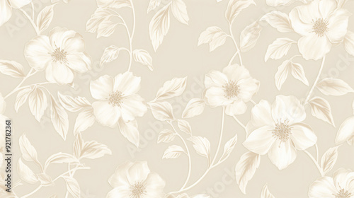 Design an elegant pattern featuring hand-drawn flowers in soft beige and white. seamless wallpaper, patterns, background, backdrop, wallpaper