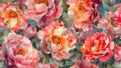 Design featuring a watercolor pattern of peony flowers