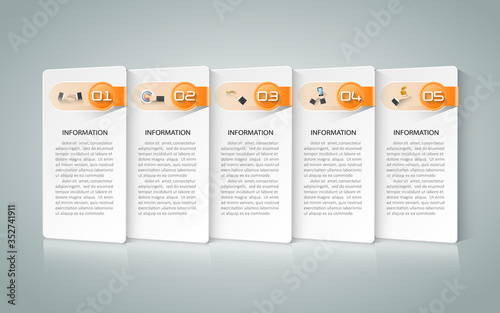 Design infographic template 5 options. Business concept can be used for workflow layout, diagram, number options, timeline, steps, demo infographic