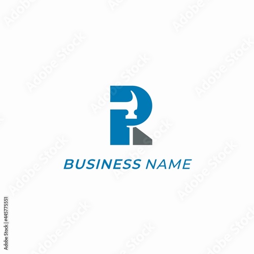design logo combine letter R and hammer