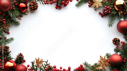 Design photo frame for Christmas. It incorporates Christmas tree. white background. It should be powerful, iconic, elegant, complex and simple