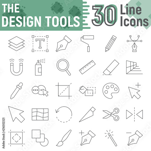 Design tools thin line icon set, graphic design symbols collection, vector sketches, logo illustrations, soft signs linear pictograms package isolated on white background, eps 10.