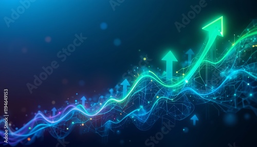 Design with Glowing Upward Arrows in Blue and Green Representing Business Growth and Success on Gradient Backdrop Generative AI