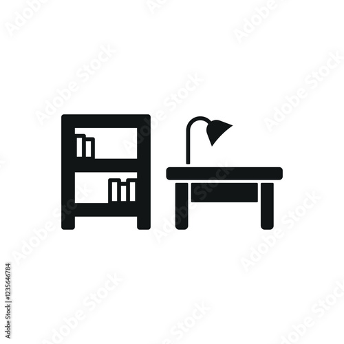Desk and bookshelf set icon featuring a clean and professional style, ideal for education, library, and home office visuals.