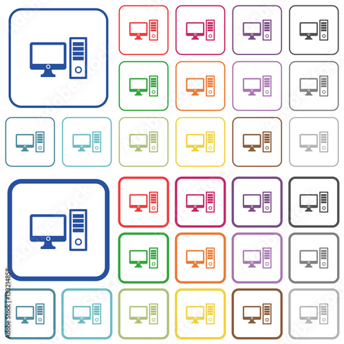 Desktop computer outlined flat color icons