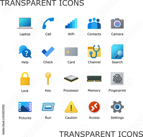 Desktop icon pack. My computer folder theme. Transparent shortcuts. Linux customization icons. PC signs. System software and app. Mobile UI. New eleven inspired vector illustrations.