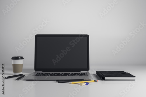 Desktop with emtpy laptop