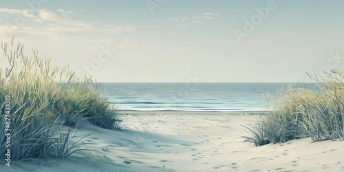 Desolate Beachfront: A beachfront devoid of people, with empty shores and calm waters, creating a serene yet lonely atmosphere