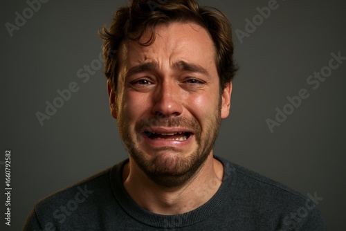 Desperate man crying with genuine emotion, portraying sadness, grief, and despair