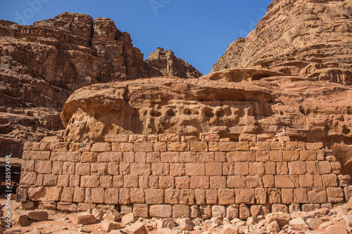 destroyed brick wall in rocky desert Middle East Arabic natural environment