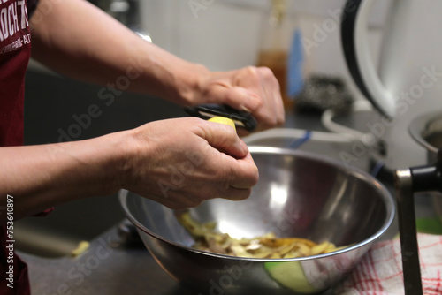 detailaufnahme in einer Küche beim der vorbereitung einer speise