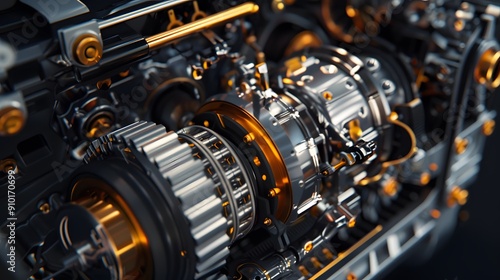 Detailed 3D engine model with explosive views of the transmission system and drive shaft components